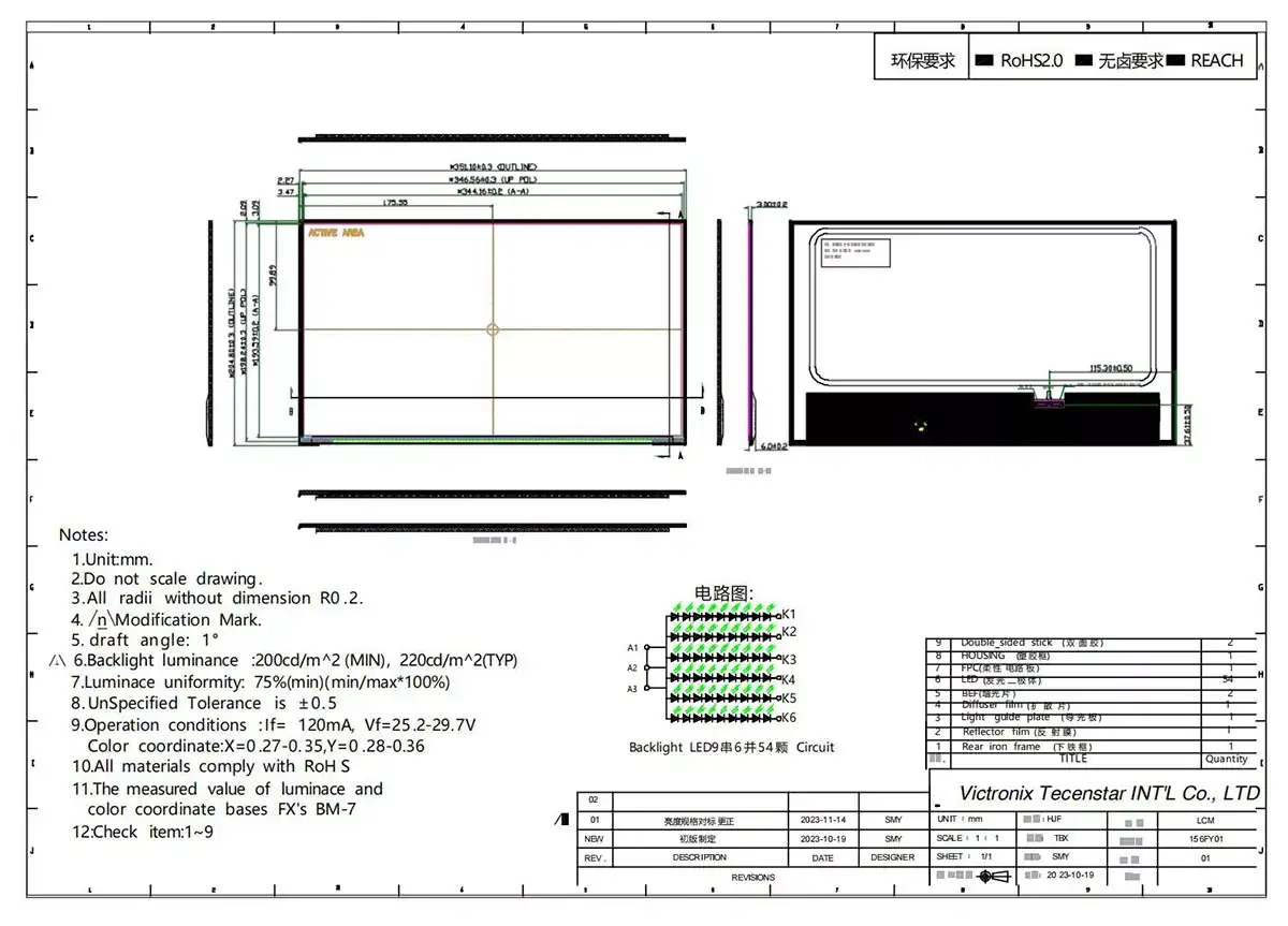 | Ukuran modul | 351.86 (h)*206.33 (v)*3.20 (d) | mm | Tanpa PCB |